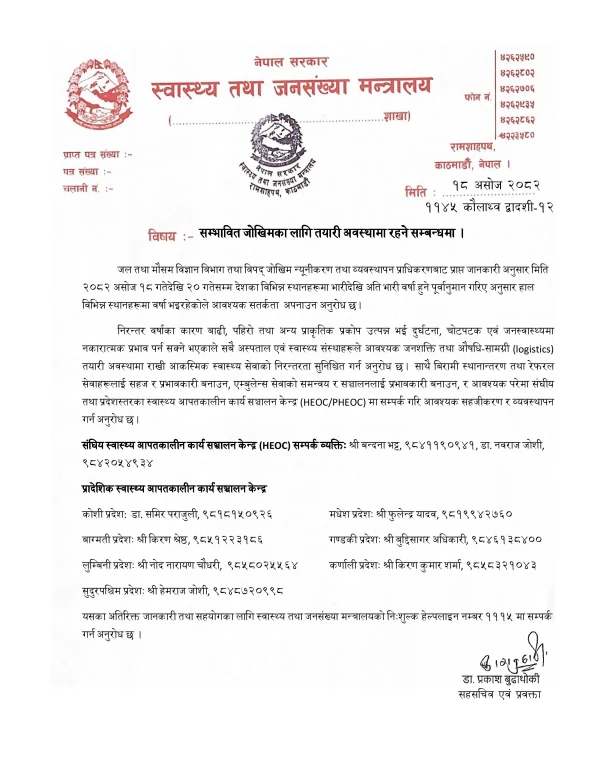 सम्भावित जोखिमका लागि तयारी अवस्थमा रहने सम्बन्धमा